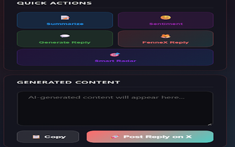 FenneX, X/Twitter kullanıcıları için geliştirilmiş bir yapay zeka destekli yardımcıdır. Bu eklenti, kullanıcıların sosyal medya etkileşimlerini daha akıllı bir şekilde yönetmelerini sağlarken, akıllı radar özelliği ile önemli konuşmaları bulmalarına yardımcı olur. FenneX, kullanıcıların paylaşımlarına hızlı ve etkili yanıtlar vermelerini sağlayan iki farklı çalışma akışına sahiptir: Hızlı Akış ve Usta Akış. Hızlı Akış, saniyeler içinde hesaplanan yanıtlar sunarken, Usta Akış derin analizler yaparak daha özelleştirilmiş yanıtlar oluşturur. Ayrıca, kullanıcıların verilerini koruyarak tamamen tarayıcı tabanlı bir deneyim sunar.